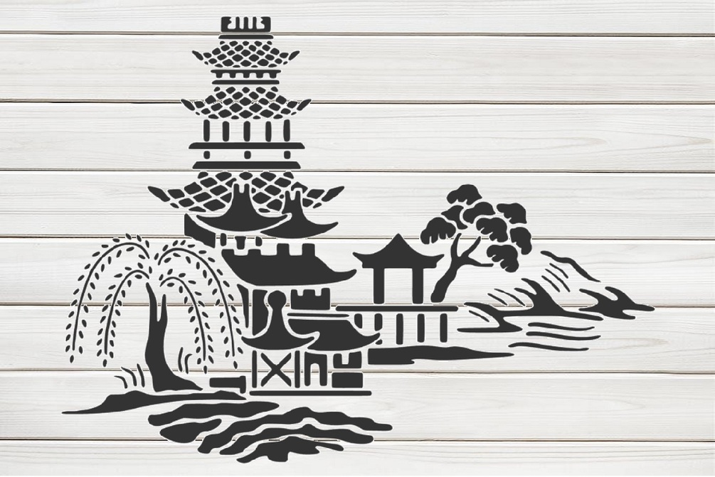 Chinese Landscape 2 Stencil Model Template design print, Digital Download ClipArt Graphic for Dyi craft wall furniture deco , SVG, PNG, DXF